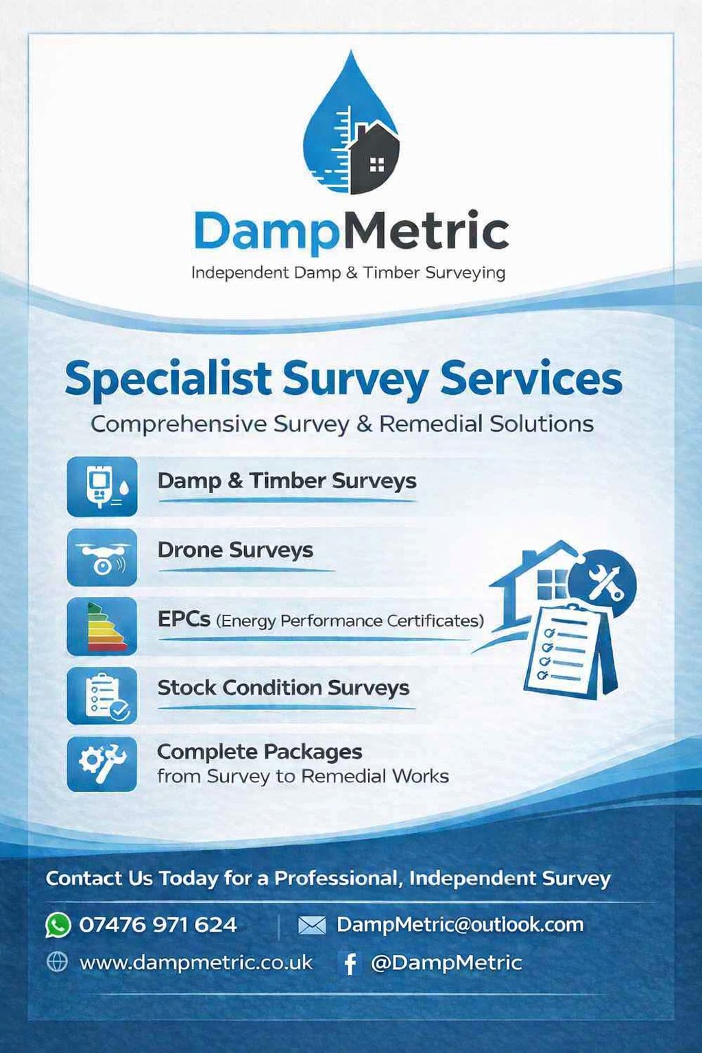 Offering services From Damp & Timber Surveys to Drone Inspections, EPCs, and full remedial packages, we cover everything from diagnosis to tailored solutions.